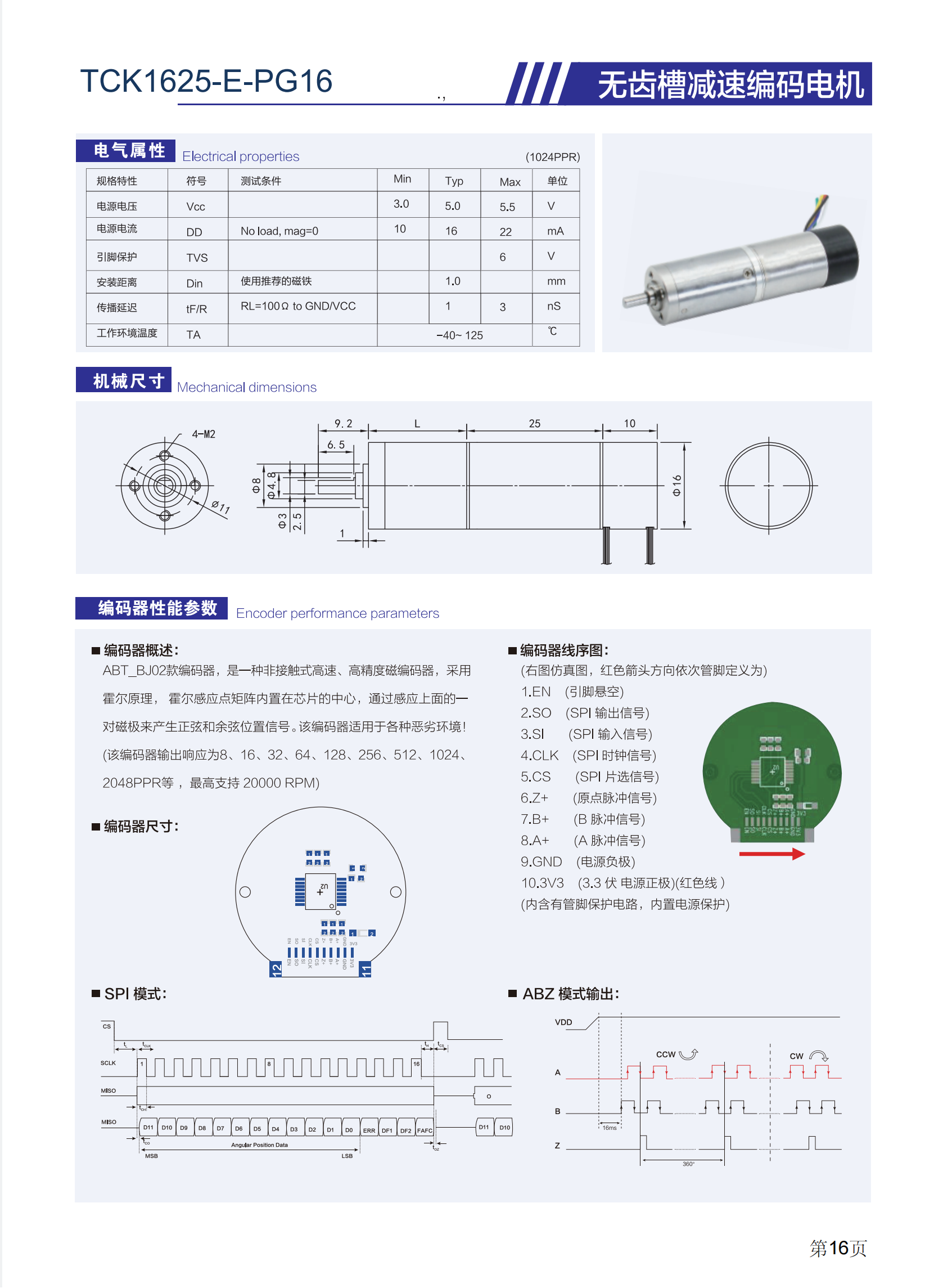 無刷無齒槽減速編碼電機TCK1625-E-PG16