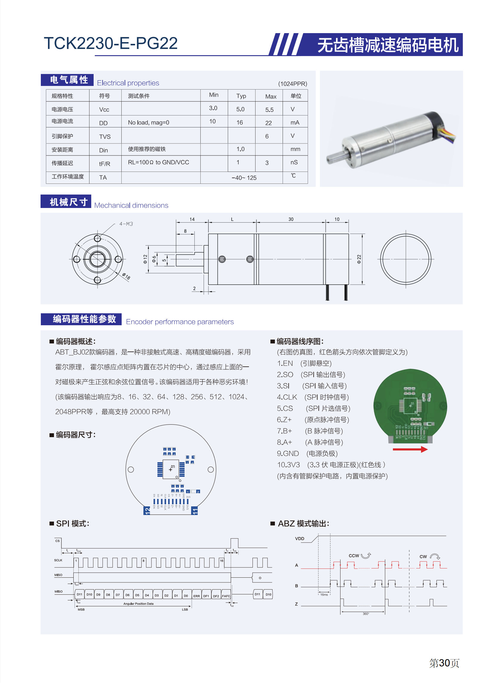 無齒槽減速編碼電機TCK2230-E-PG22