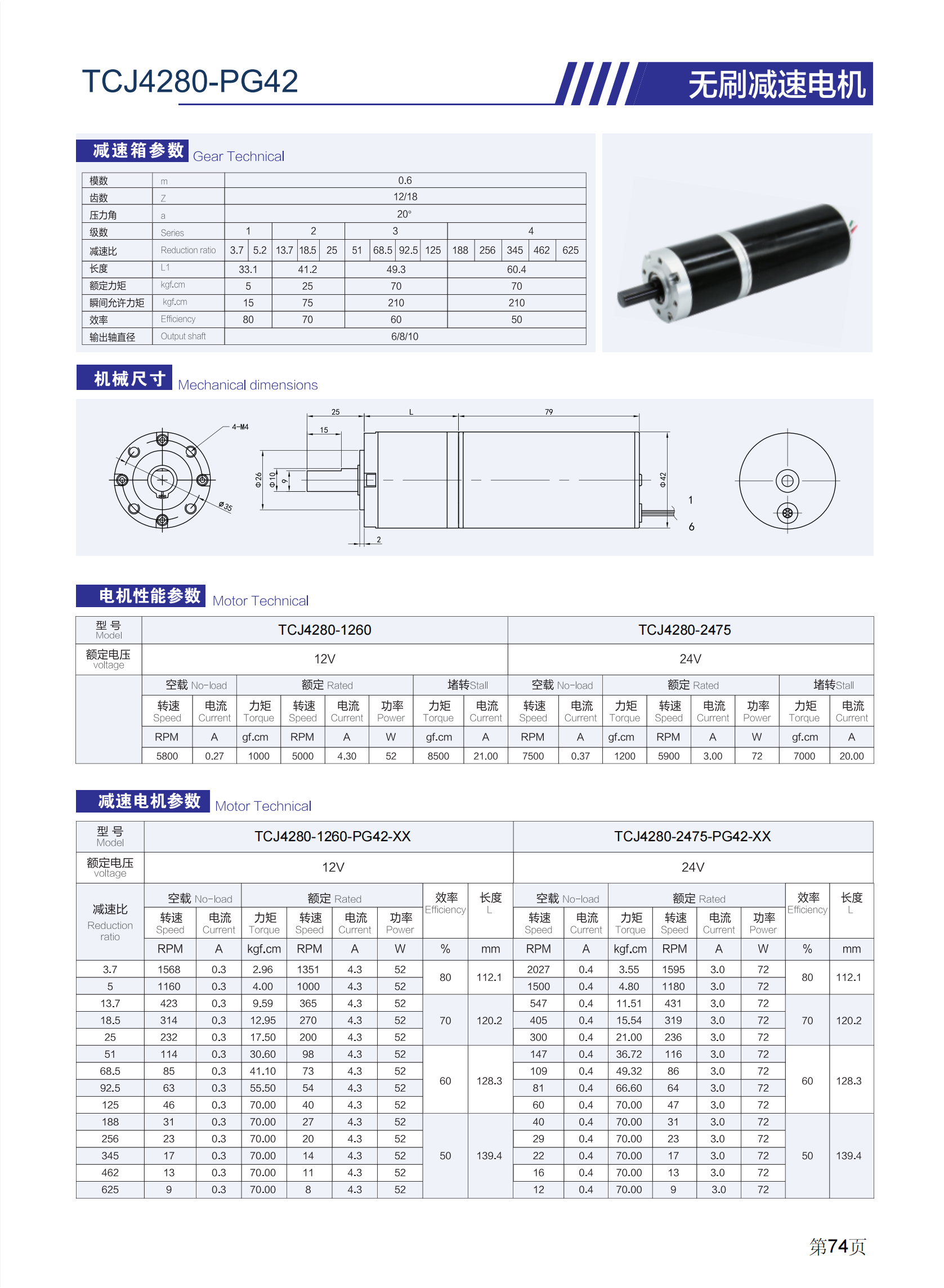 TCJ4280-PG42型號電機為42系列直流無刷電機配套42PG型號的行星減速機,可選電壓12V-24V,轉速5800-7500,52W功率